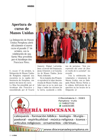 Seminario de Pamplona, con co agradeció la labor desinte- Manos Unidas, con su Dele-