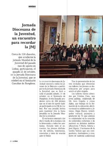venes de la Diócesis a partici- sus talleres, los jóvenes se dis-