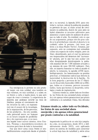malthusianismo auspiciado desde el globalis- la actual baja tasa de natalidad y, entre otras