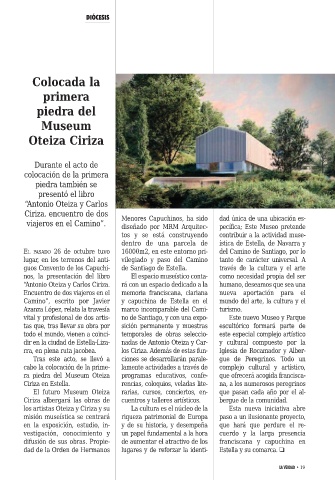 ra piedra del Museum Oteiza programas educativos, confe- que ofrecerá acogida francisca-