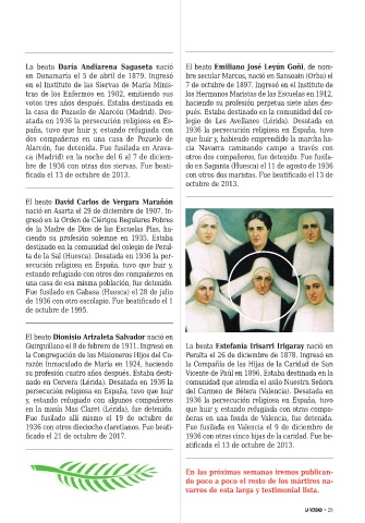1936 con otros dieciocho claretianos. Fue beati- Fue fusilada en Valencia el 9 de diciembre de