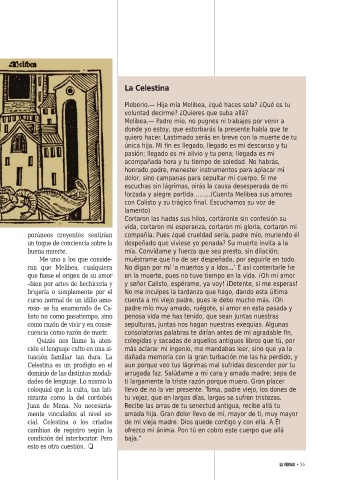 Pleberio.— Hija mía Melibea, ¿qué haces sola? ¿Qué es tu