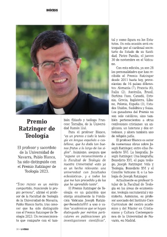compartido, trasciende la pro- El Premio Ratzinger de Te- gía en las áreas de ecumenis-