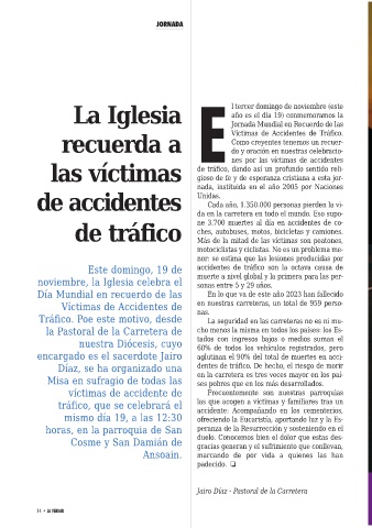encargado es el sacerdote Jairo aglutinan el 90% del total de muertes en acci-