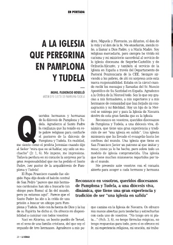 dela. Agradezco al Santo Padre de Pamplona y Tudela, a una diócesis viva, di-