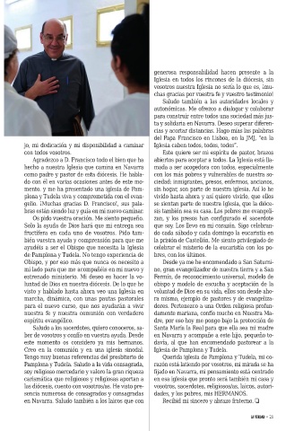 en Navarra. Saludo también a los laicos que con Recibid mi sincero y abrazo fraterno. ❏