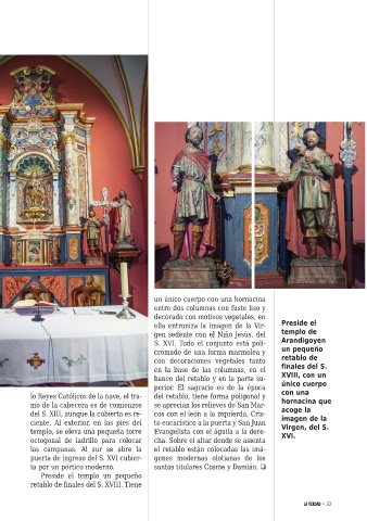 las campanas. Al sur se abre la el retablo están colocadas las imá-