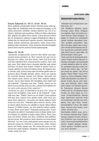 berehala eta beste bost irabazi. Orobat bi talentu hartu zi- ak, parabolako jaunaren antzera, be-