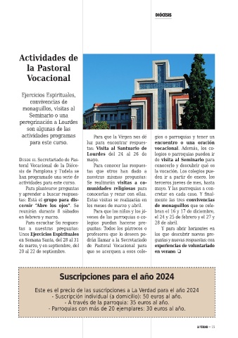 de marzo, y en septiembre, del de Pastoral Vocacional para experiencias de voluntariado