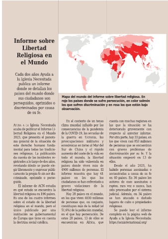 bertad Religiosa en el Mundo de la COVID-19, las secuelas de respecto al anterior informe.