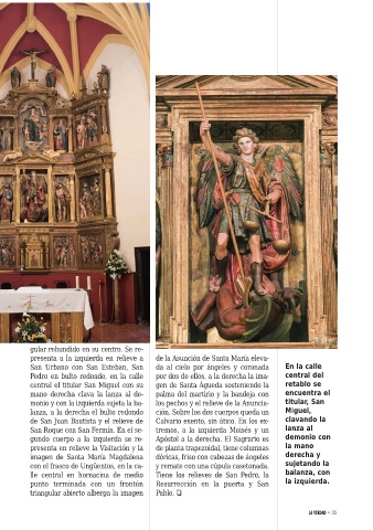 central el titular San Miguel con su gen de Santa Águeda sosteniendo la retablo se