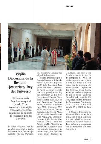LA PASADA NOCHE del 25 de no- Sarriguren). A estas se unie- con la Adoración Nocturna