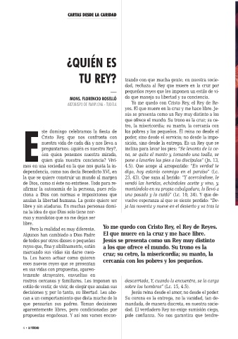 Cristo Rey, que nos confronta con poder, sino desde el servicio; no desde la impo-