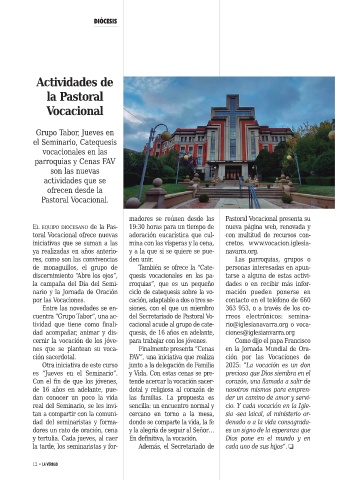 discernimiento “Abre los ojos”, quesis vocacionales en las pa- tarse a alguna de estas activi-