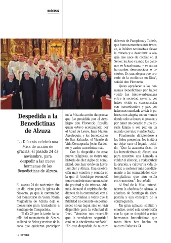 un día triste para la iglesia de más, destacó el espíritu de obe- nieron la abadesa de Alzuza, la