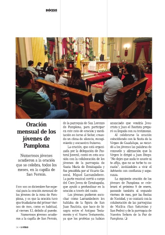 Pamplona La oración, que está organi- dó a los jóvenes las palabras de
