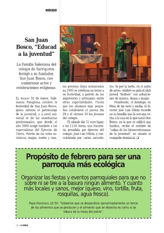 Tierra. Patrón de las artes es- colegio, José Luis Villota, y con- de la juventud”, en alusión al