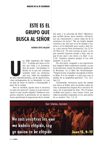 en todo este proceso?, ¿quién es el que busca?, vina y de la gratuidad de Dios: "Por él hemos