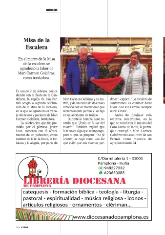 Carmen Goldáraz, bordadora. Durante la homilía Leoz re- emotiva celebración, en la