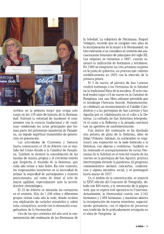 cargo en los 138 años de historia de la Herman- Agustín por su colaboración en el culto a la Do-