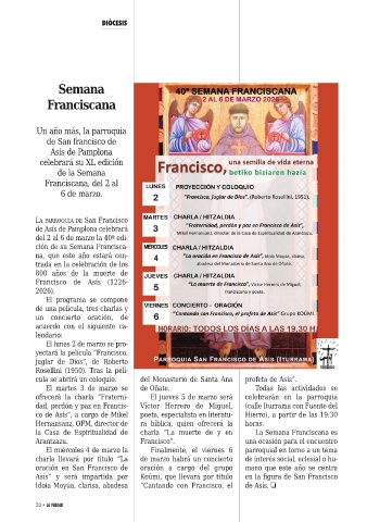 co de Asís”, a cargo de Mikel poeta, especialista en literatu- Hierro), a partir de las 19:30