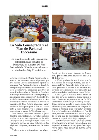 Consagrada en el Consejo Pastoral Diocesano Desde Confer Navarra se sienten satisfechos