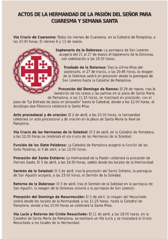 ACTOS DE LA HERMANDAD DE LA PASIÓN DEL SEÑOR PARA