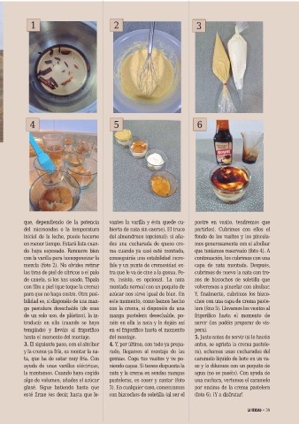 3. El siguiente paso, con el almíbar 4. Y, por último, con todo ya prepa- antes, se agrieta la crema pastele-